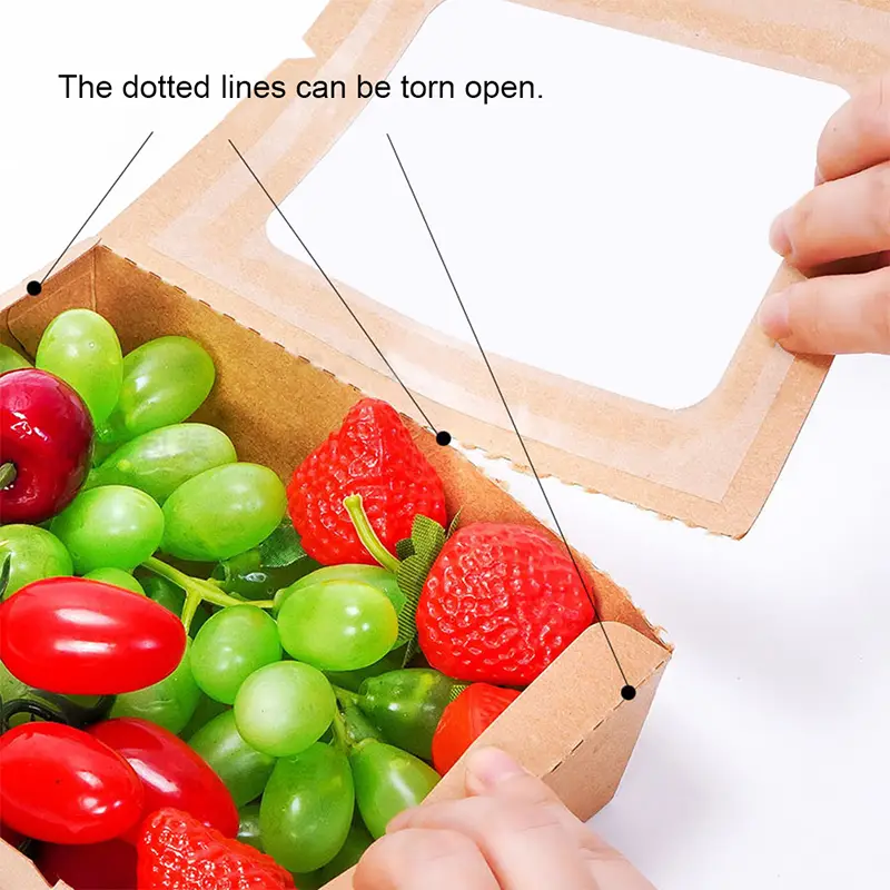 การออกแบบฝาพับทำให้กล่องอาหารกระดาษหน้าต่างแบบใช้แล้วทิ้งขนาด 1200 มล. นี้ใช้งานได้สะดวกยิ่งขึ้น หน้าต่างพลาสติกโปร่งใสสูงสามารถแสดงอาหารทั้งหมดได้อย่างชัดเจน ช่วยเพิ่มความดึงดูดสายตาและความต้องการซื้ออย่างมาก การออกแบบเส้นประที่ฉีกขาดง่ายช่วยให้ผู้บริโภคนำวัสดุส่วนเกินออก ประหยัดพื้นที่เมื่อแบ่งปันอาหารบนโต๊ะ การออกแบบแบบ snap ช่วยให้ปิดระหว่างฝาครอบและด้านล่างได้แน่นยิ่งขึ้น