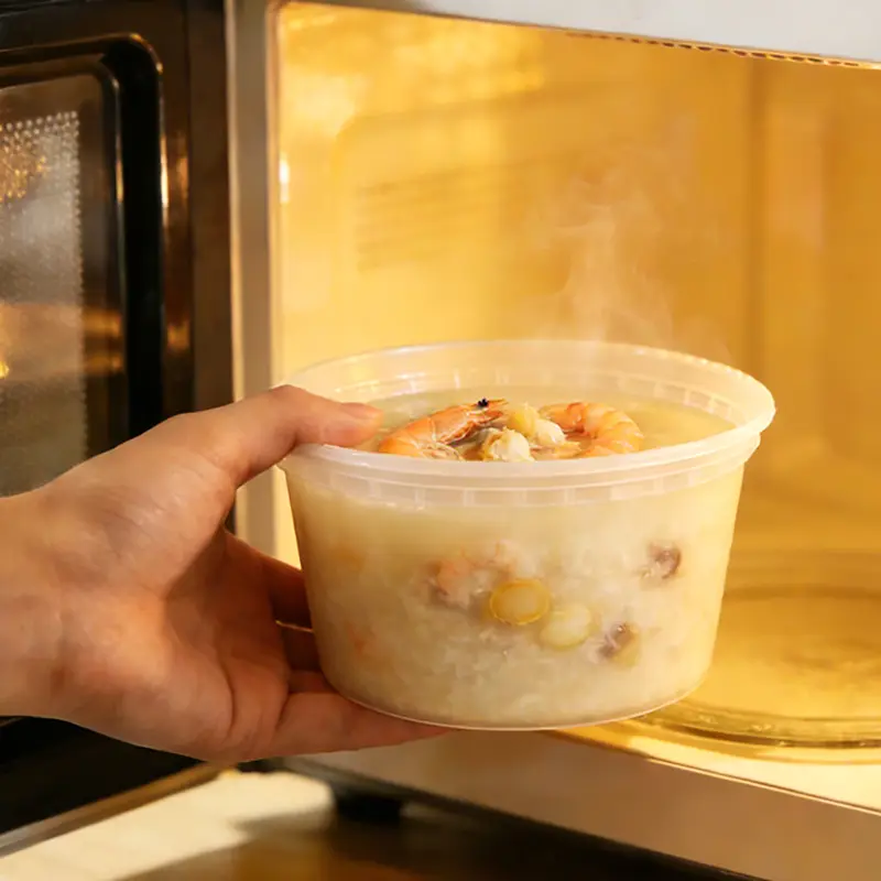 ภาชนะบรรจุอาหารพลาสติกเดลี่ทรงกลมใสขนาด 12 ออนซ์ของเราสามารถปรับใช้กับอาหารหลากหลายได้อย่างสมบูรณ์แบบ ตั้งแต่สลัดเย็นไปจนถึงซุปร้อน เหมาะสำหรับแช่เย็นเพื่อเก็บไว้ระยะยาวเพื่อใช้ในอนาคต และสามารถอุ่นได้อย่างรวดเร็วในเตาไมโครเวฟ (โปรดเปิดฝาออกระหว่างทำความร้อน) นอกจากนี้ยังสามารถทำความสะอาดด้วยเครื่องล้างจานได้อีกด้วย