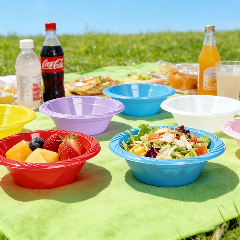 ชามพลาสติกปาร์ตี้แบบใช้แล้วทิ้งขนาด 12 ออนซ์เป็นชามพลาสติกแบบใช้แล้วทิ้งที่ออกแบบมาเป็นพิเศษสำหรับการปิกนิกกลางแจ้งโดยเรา สามารถใส่สลัด ถาดผลไม้ หรือของว่างชิ้นเล็กๆ ได้อย่างง่ายดาย ไม่ดูเทอะทะเนื่องจากขนาดที่ใหญ่และไม่ส่งผลต่อประสบการณ์การใช้งานเนื่องจากความจุไม่เพียงพอ เหมาะอย่างยิ่งสำหรับสถานการณ์อาหารมื้อเบากลางแจ้งต่างๆ