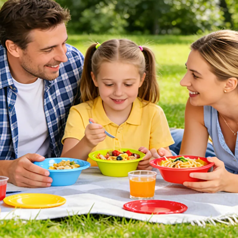 ชามพลาสติกสำหรับปาร์ตี้แบบใช้แล้วทิ้งขนาด 12 ออนซ์ทำจากพลาสติกเกรดอาหารที่ปลอดภัยและไม่มีกลิ่น จึงมั่นใจได้ถึงประสบการณ์ที่ปลอดภัยและมั่นใจเมื่อใช้งาน สามารถบรรจุได้ทั้งผลไม้แช่เย็นและอาหารมื้อเบาอุ่น ๆ เหมาะสำหรับอาหารหลากหลายประเภท ตัวเลือกสีมีหลากหลาย ครอบคลุมสีแดง น้ำเงิน ม่วง ขาว เหลือง ชมพู และโทนสีอื่นๆ อีกมากมาย เมื่อวางไว้บนผ้าห่มปิกนิก จะมีลักษณะคล้ายกับจานสีและมีเอฟเฟ็กต์ฟิลเตอร์ภาพถ่ายในตัว รูปลักษณ์มีทั้งสไตล์และประโยชน์ใช้สอย