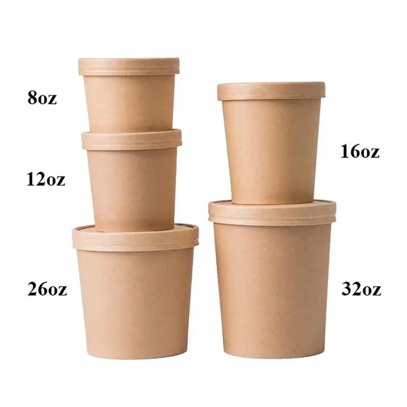 ปลอดภัย ใช้งานได้จริง สวยงาม และเป็นมิตรกับสิ่งแวดล้อม ชามซุปกระดาษคราฟท์ขนาด 32 ออนซ์ของเราเป็นโซลูชันบรรจุภัณฑ์ที่สมบูรณ์แบบสำหรับอาหารร้อน อาหารเย็น ของขบเคี้ยว และบริการนำกลับบ้านที่มีแบรนด์