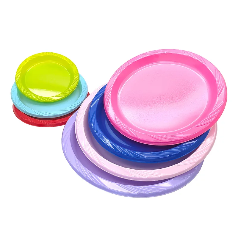 จานพลาสติกปาร์ตี้ทรงกลมแบบใช้แล้วทิ้ง 7 นิ้ว