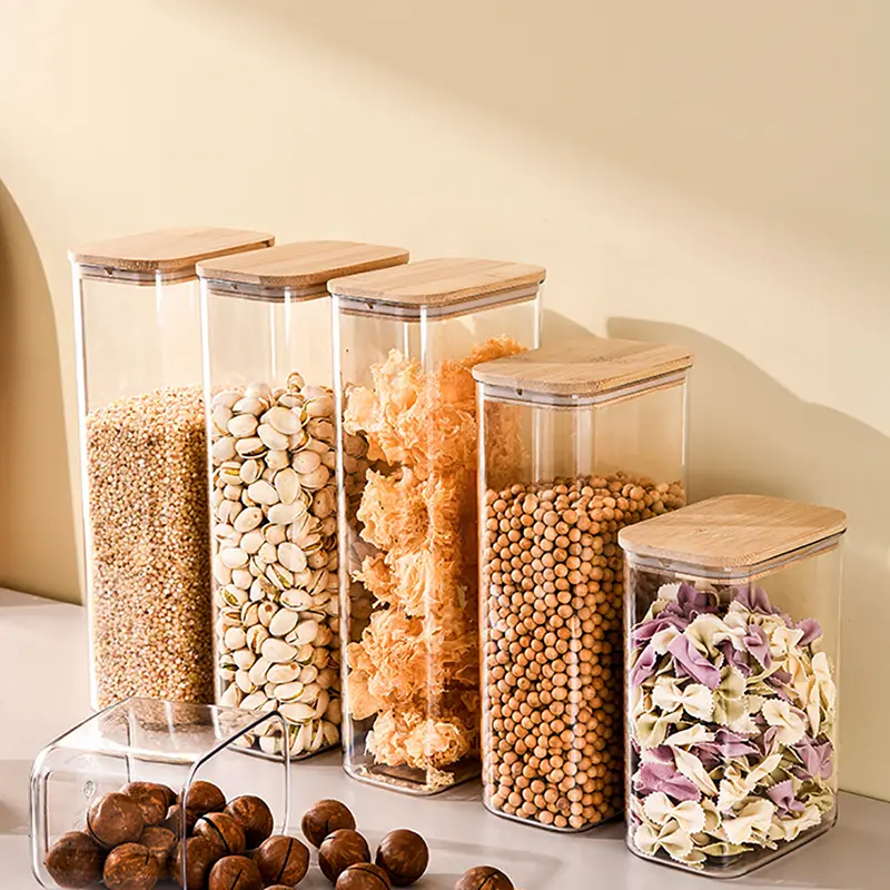 โถเก็บพลาสติกพร้อมฝาไม้เหมาะสำหรับสถานการณ์ต่างๆ เช่นการจัดเก็บในครัวที่บ้าน การจัดเก็บตู้เย็นในตู้เย็น และการจัดเก็บสินค้าแห้งบนเคาน์เตอร์ สามารถจัดเก็บสิ่งของได้หลากหลาย เช่น ธัญพืชและซีเรียล ลูกอม ของว่าง ชา เครื่องเทศ และอาหารแห้ง มีความเรียบร้อยและเป็นระเบียบ เข้าถึงได้สะดวก ทำให้สภาพแวดล้อมภายในบ้านสะอาดขึ้น และทำให้ชีวิตในครัวง่ายขึ้น